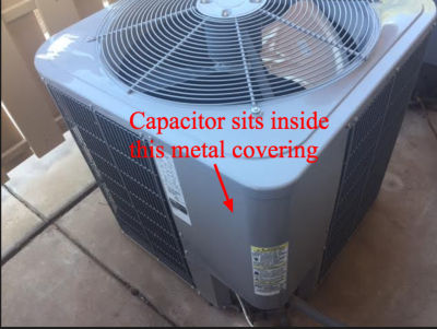 Explanation on how to fix an air conditioner unit or outdoor heat pump fan that is not working due to a bad capacitor.